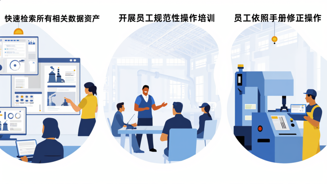 BI模式的优势在于,企业中各类型的数据资产都会被登记管理,包括监控视频、员工手册、员工信息、设备记录等等。系统会同时调取工厂设备的故障记录、对应时间点的监控视频、人事员工的基本信息,节省了大量的人力物力。同时,AI会自动关联工人操作规范中的标准流程,生成针对新员工的个性化培训方案,真正实现数据资产的灵活串联与深度应用。